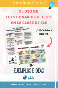 Durante mis más de diez años enseñando español en institutos italianos, he podido comprobar lo útiles que resultan los “tests” o cuestionarios para introducir contenidos, tanto gramaticales como léxicos, e incluso culturales. Por un lado, se activa el “ego” típico de la edad y los estudiantes se acercan a la actividad sin la conciencia inmediata de estar aprendiendo un determinado aspecto lingüístico; por otro lado, los contenidos se presentan en contexto, y no de manera aislada como ocurre a menudo en los libros de texto. Además, utilizan la lengua antes de analizarla y las estructuras les sirven de modelo para construir las suyas propias en un segundo momento.