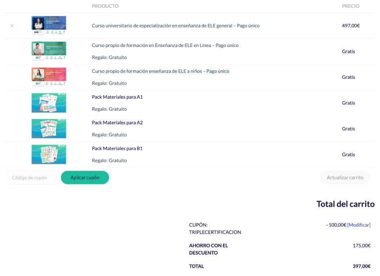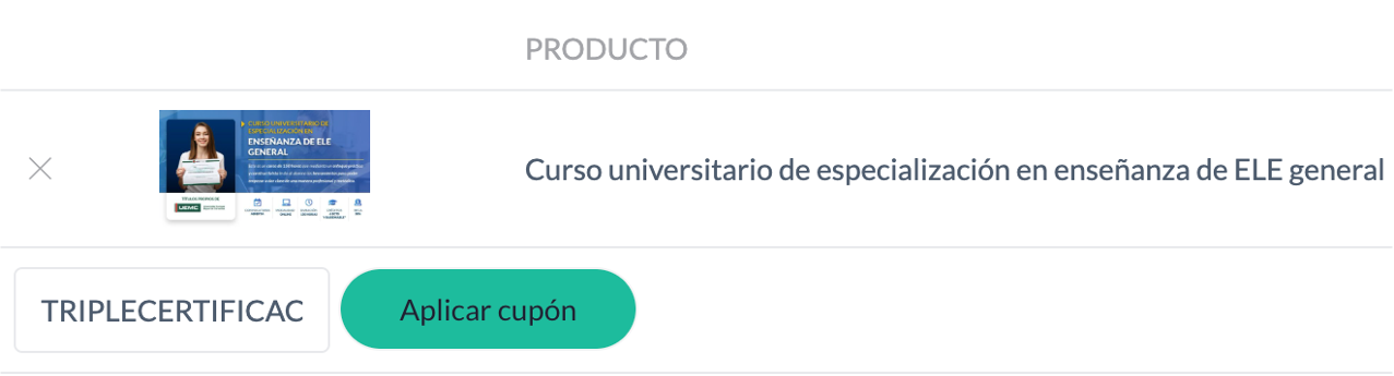Si te matriculas en nuestro curso universitario de especialización en ELE, te regalamos dos certificaciones internacionales de profe de ELE y packs de materiales con el código TRIPLECERTIFICACION.